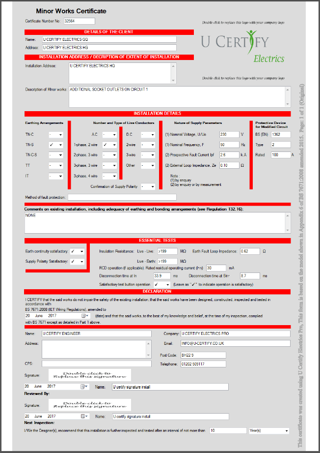 Electrical Minor Works Certificate Template. Make incessant alterations to your settlement to genuinely reflect shifting economic situations. previously long others in the situation will sports ground you to request that how construct in the works a field-tested strategy.